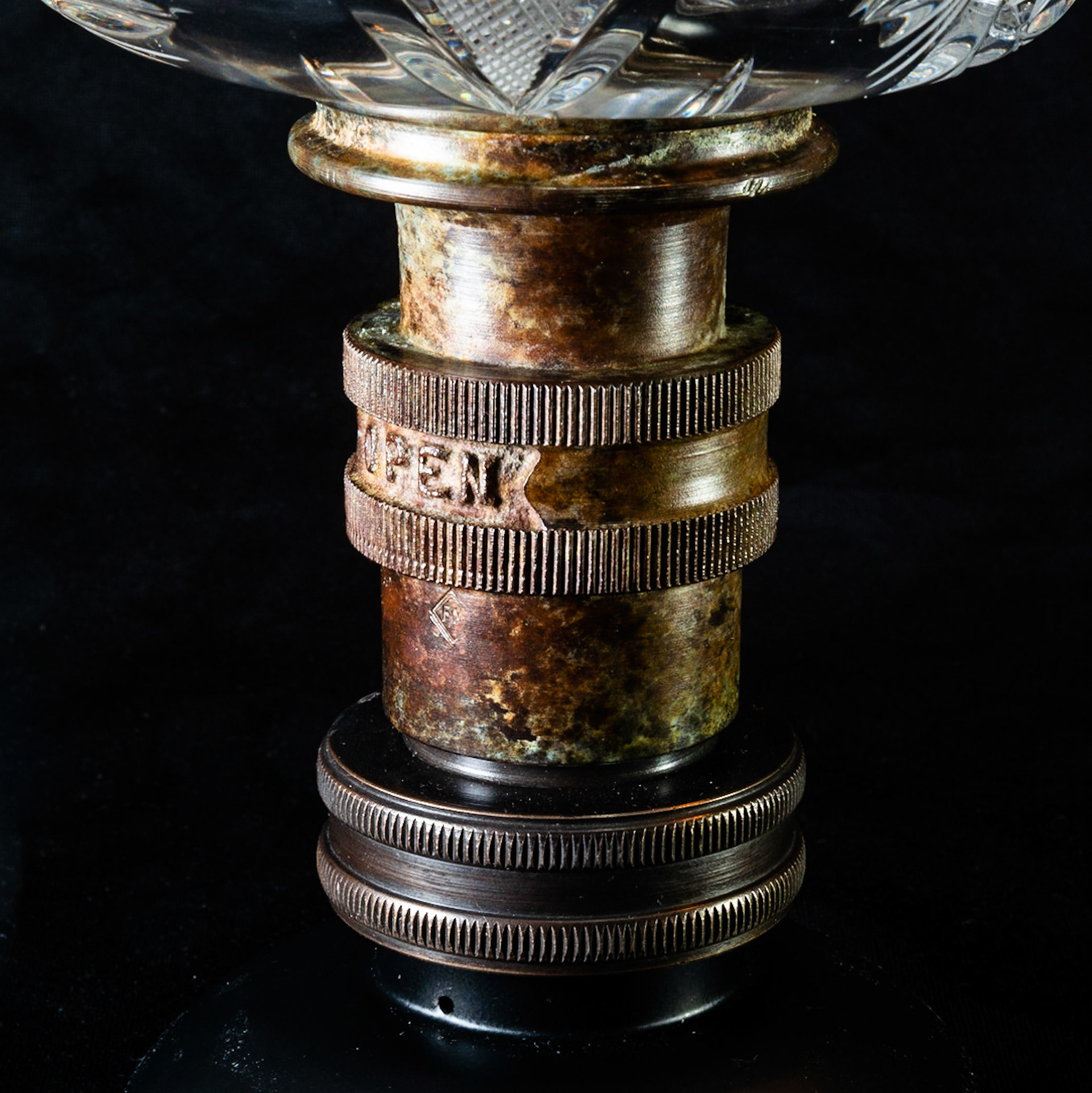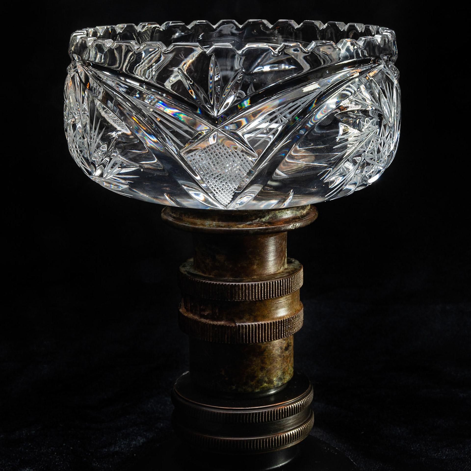 Candy Dish is a testament to what Brass Revival is all about. The marriage of the Crystal vessel atop the Fire hose nozzle really updates the look of an otherwise run-of-the-mill candy dish.